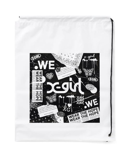 対象アイテムをご購入いただいたお客様に、先着で「X-girl×WEリーグ コラボノベルティ」をプレゼント。「WEAR THE HOPE」のメッセージをのせたバンダナ調デザインのショッパーは、肩掛けできるサイズ感で、デイリーにも使える仕上がりに。