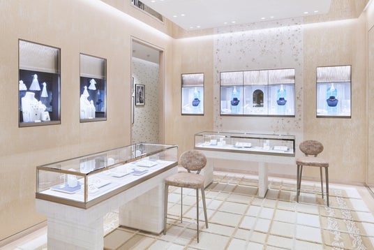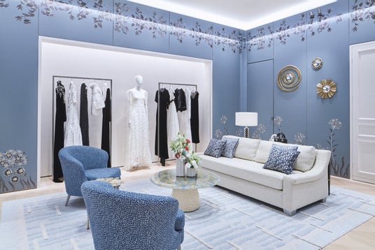 明るく洗練されたこの新しいブティックに取り付けられたデザイナーによるインテリアのアイテムには、ムッシュ ディオールが愛した明るい色調があしらわれており、ヴェルサイユの寄木細工のフローリングやフローラルモチーフなど、アイコニックなパリの本店「30 モンテーニュ」を彷彿とさせる建築要素が特徴です。