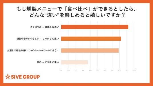 今後楽しみたい食べ比べの内容としては、「さっぱり系と濃厚系の違い」「燻製の香りの違い」「お酒との相性」といった項目に関心が集まりました。