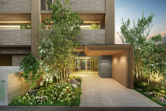 外観は、日本に息づく美意識と感性に響くデザインを追求いたしました。グレイッシュなカラーを基調に都市と調和する落ち着いた意匠を施し、時の移ろいとともに深みを増す、永く愛着の持てる佇まいを目指しております。