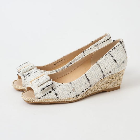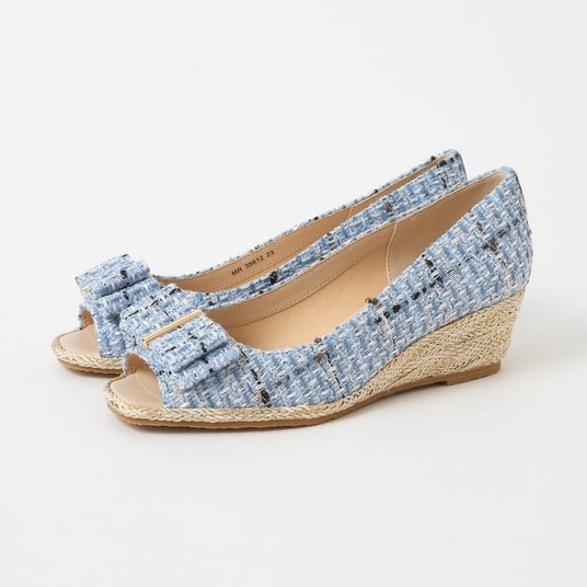 リボン付きオープントゥウェッジサンダル