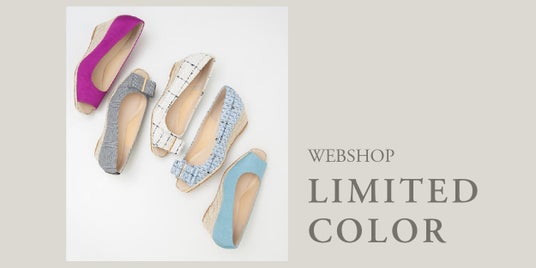 今年はリボン付きで大人可愛い5cm台ウェッジと美脚効果バツグンな7cm台ヒールの2モデルでWEB限定カラーをご用意いたしました。