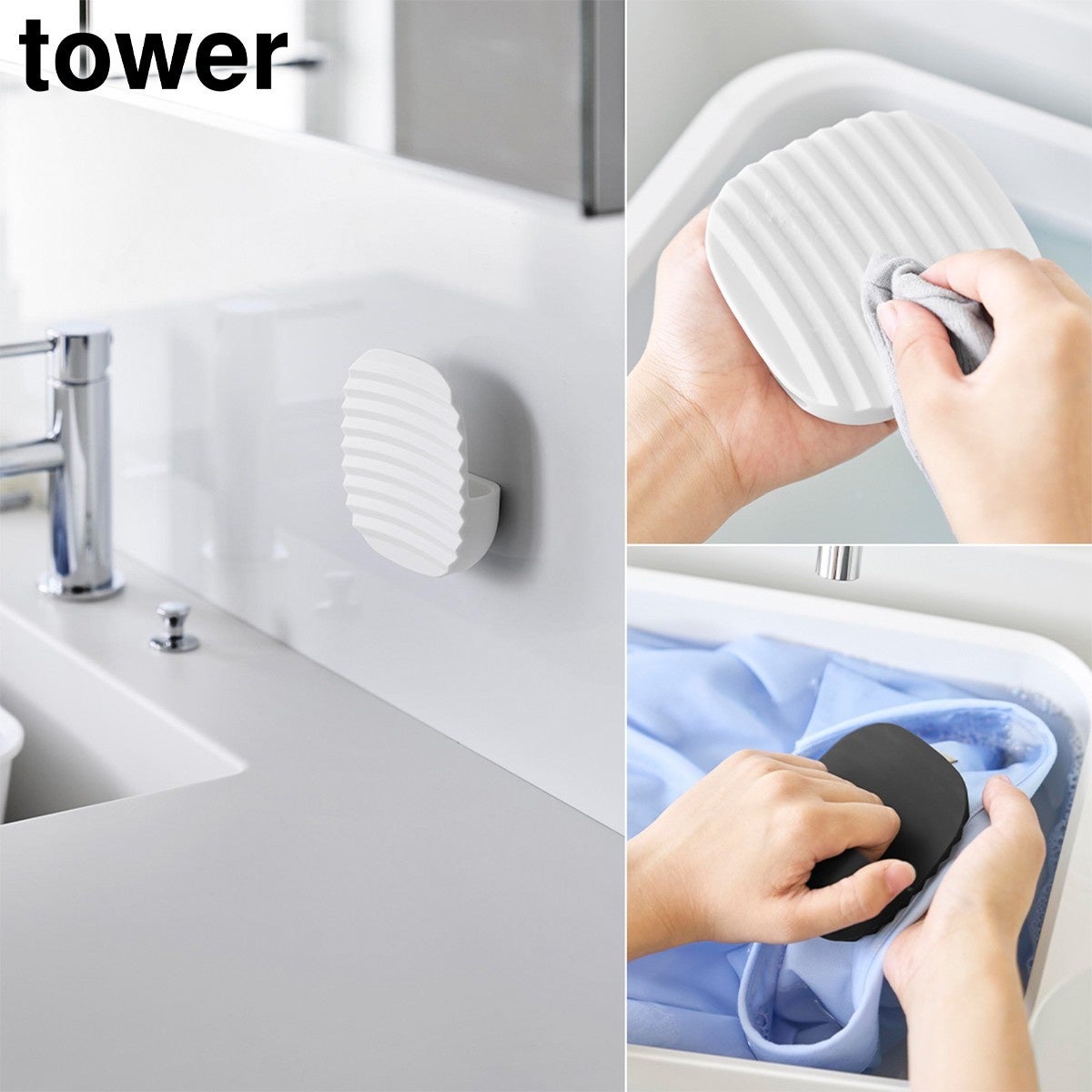 洗濯板のような波状の突起面で、頑固な汚れや食べこぼしなどのシミを擦り洗いできます。