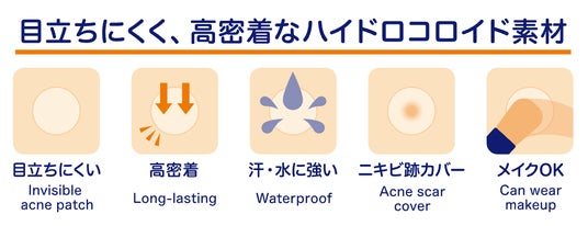 プレミアムポイントパッチ長時間密着する高密着ハイドロコロイド素材を採用しており、非常に薄く目立ちにくいのが特長です。
