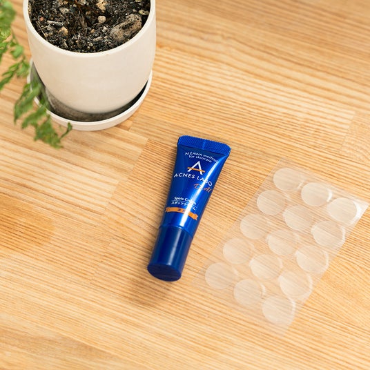 夜は「薬用スポッツクリーム+ポイントパッチ」で寝ている間に集中ケア。アクネスラボのロングセラー商品「薬用スポッツクリーム」によるケアがおすすめです。クリームが余分な皮脂を吸着し、有効成分がニキビを予防しながら、肌の潤いを守ります。