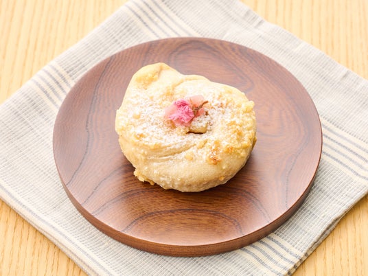 南浦和にある小さなベーグルショップで、自家製酵母と国産小麦による「もちっ」「むぎゅっ」とした食感ながら柔らかい生地が特徴。自家製バスクチーズケーキをもっちもちのベーグル生地で巻き込み、やさしい甘さのさくらあんと合わせた一品は、春らしい味わいのベーグルに仕上がっています。