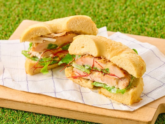 チーズが香るベーグル「ボルケーノ」で贅沢にサンドしたのは、ジューシーな鶏肉の旨みと旬のアスパラの食感が調和した、ビッグオーブンの「アスパラミニロールチキン」。しっかりとした味付けとボリューム感で、食べ応えは抜群です。春のピクニックやランチを彩る、こだわりの限定サンドをお楽しみください。