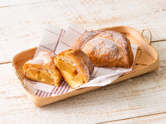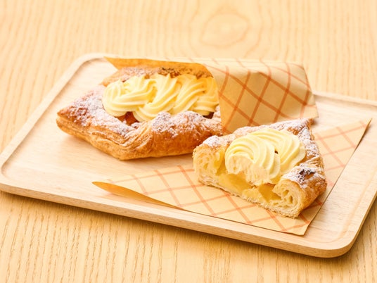 ホイップクリームとカスタードを絶妙な比率でブレンドした、後味軽やかなカスタードクリームが主役のアップルパイを引き立てます。アップルパイの酸味と甘みに、とろけるような口どけのカスタードクリームがよく合います。