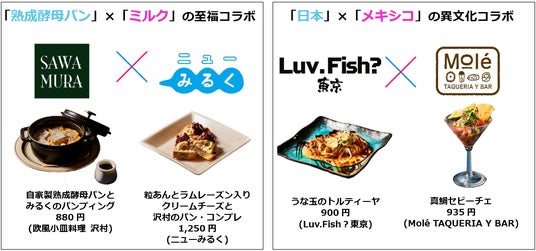 通常のレストランフロアとは異なる、一体型フロアでありながら、ジャンル・スタイルの異なる個性豊かな店舗が集う「丸の内ハウス」ならではの、「寿司×和牛」や「日本×メキシコ」といったジャンルの異なる2店舗同士でコラボした、周年ならではの特別メニューをご提供いたします。店舗同士が垣根を越えて生み出す、このフロアならではの新しい味わいの発見をお楽しみください。