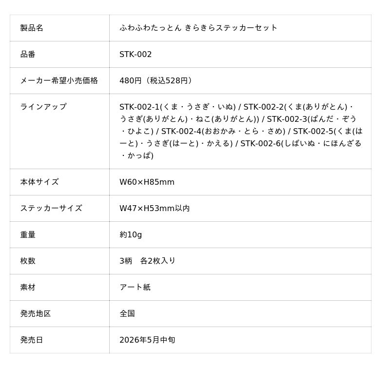 ナカバヤシ株式会社(本社:大阪市中央区、社長:中林一良)は、株式会社サンレモン(本社:東京都豊島区、社長:白鳥聡)とコラボレーションした「ふわふわたっとん きらきらステッカーセット」を2026年5月中旬より全国で順次発売します。また発売に先駆け4月上旬より順次、全国のロフトにて先行発売いたします。