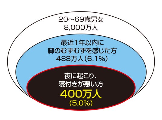 - 「脚のむずむず感」で寝つけない生活者は約400万人*¹。深刻な「睡眠負債」へと繋がる現状