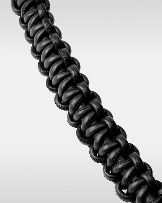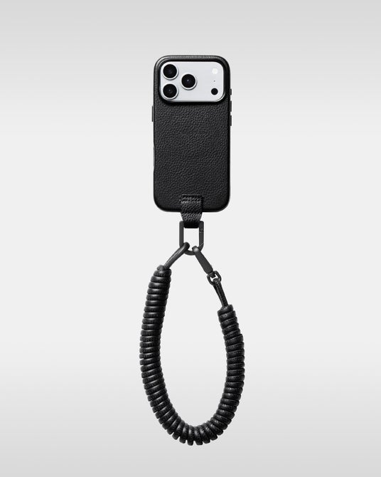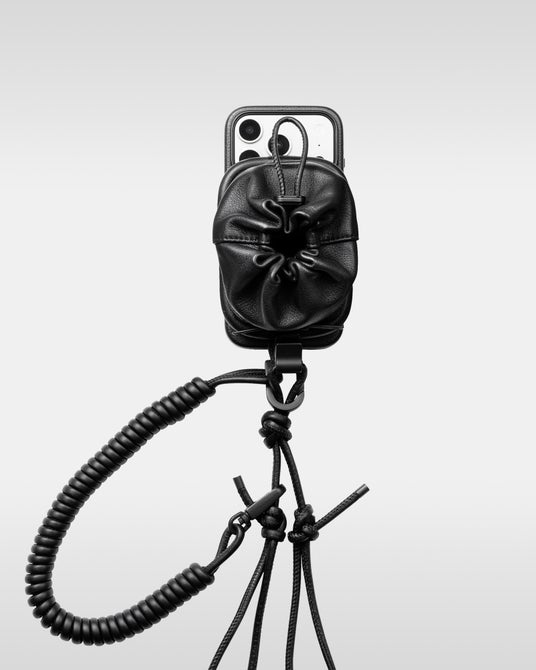 マグネットの付け根部分にノット(結び目)を配することで、確実な固定とスムーズな長さ調節を実現。「OVER-ENGINEERING」を象徴する意匠の一つであるコイル巻きのレザーストラップは、カラビナに通すことでハンドストラップとしても活用できる多機能な設計です。