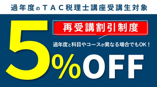 チャレンジコースは再受講割引が適用可能!過年度にTAC税理士講座を受講されたことのある方は、受講料が5%OFFになります。※直前対策講座は再受講割引対象外
