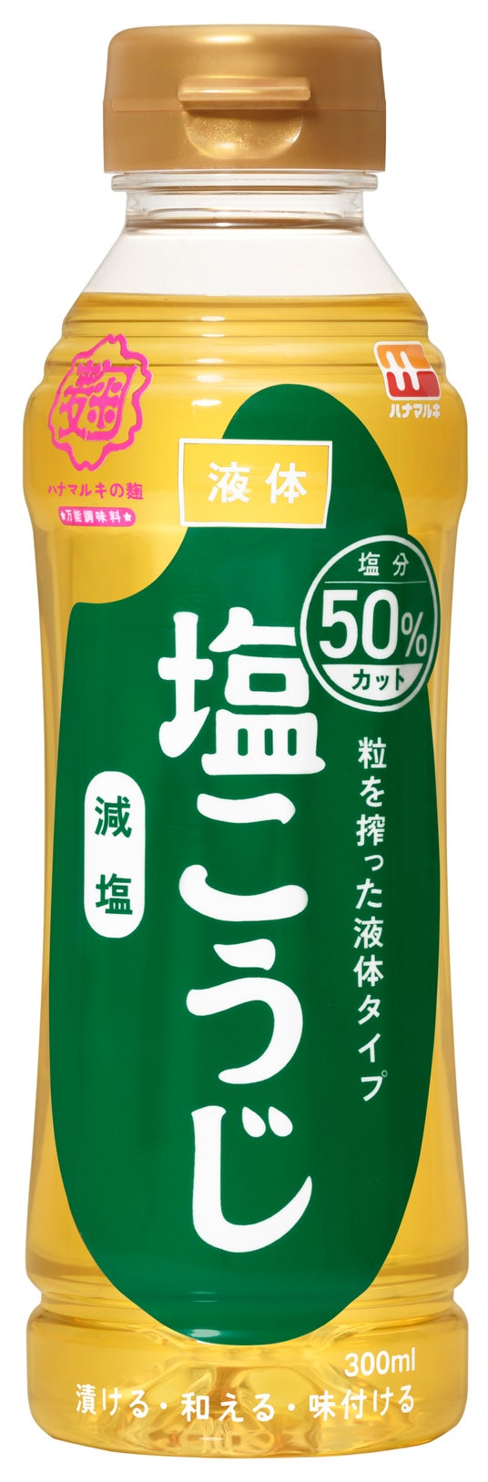 ・液体塩こうじ 米こうじと塩を丁寧に熟成させ、丁寧に搾った液体タイプの塩こうじです。ハナマルキ塩こうじの生きた酵素の力と上品なこうじの旨味が、そのまま残っています。粒のない液体タイプだから計量しやすく、色々な料理に使えます。握りやすく、量が調整しやすい、くびれ入りボトル入り。