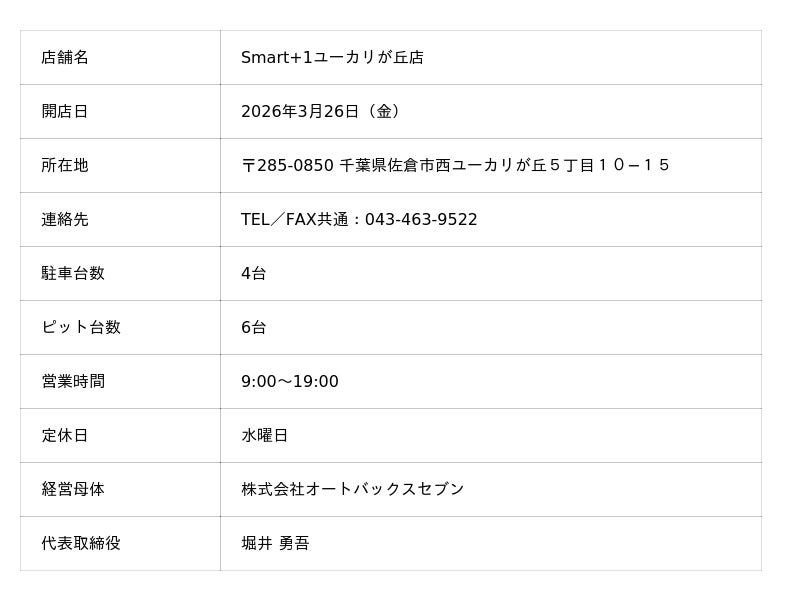 株式会社オートバックスセブン(代表取締役 社長:堀井勇吾)は、クルマのキレイを守る専門店「Smart+1ユーカリが丘店」を、2026年3月26日(木)にオープンします。