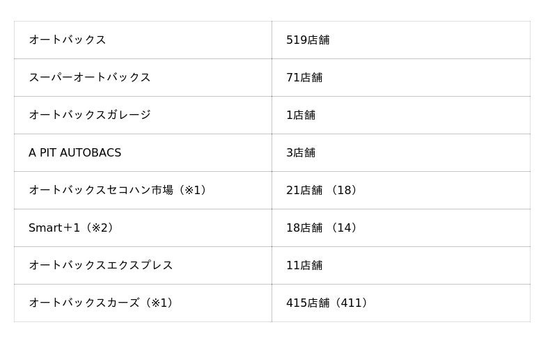 オートバックスグループ国内店舗数 計1,059店舗