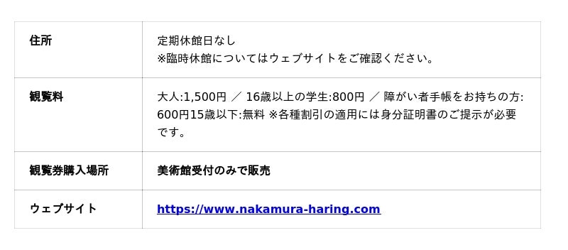 会場 :中村キース・ヘリング美術館、ホテルキーフォレスト北杜