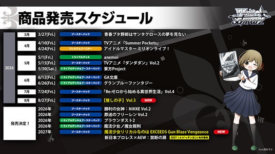 株式会社ブシロード(本社:東京都中野区、代表取締役社長:木谷高明、以下、ブシロード)は、2026年3月25日(水)に「ブシロードTCG戦略発表会2026 春」を開催し、ヴァイスシュヴァルツの今後の展開を発表しましたことをご報告いたします。
