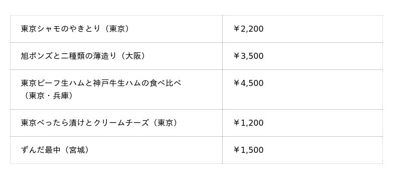 『品プリグルメ紀行~NIPPONうまいものフェア~』 メニュー例