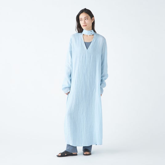 ブランドを代表する「東炊き」製法の麻を使ったワンピース。