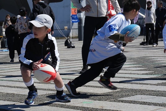 また、コーチが子どもたちを持ち上げてボールをキャッチする「リフト」も体験。普段なかなか経験できないプレーに子どもたちは大興奮。ラグビーの醍醐味を感じている様子でした。