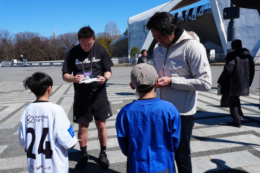 体験の後には、コーチを務めた大野均さんらに直接サインをもらったり、記念写真を撮ったりする場面もあり、子どもたちはもちろん、保護者にとっても貴重な機会となり、楽しそうな様子が見られました。