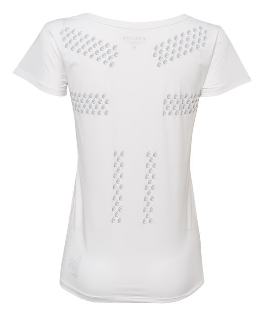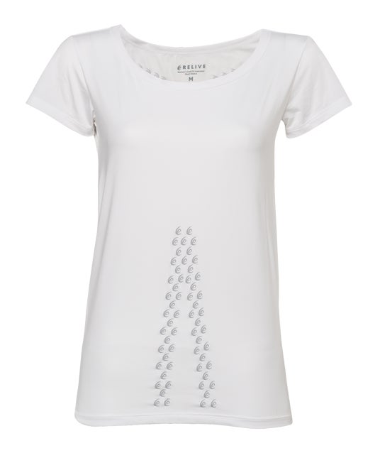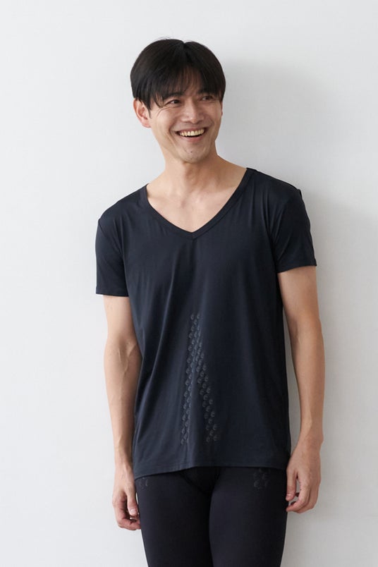 リライブウェアは遠赤外線を輻射し、着用するだけで血行を促進します。特殊な加工を施した複数の鉱石をインクに練り込み、身体のポイントに沿ってプリント加工することで物理的に身体の動きをサポートする「リライブ加工」が特徴です。リライブ加工によってパフォーマンスをサポートするだけではなく、日常的に取り入れていただくことで、身体の動きをサポートできます。