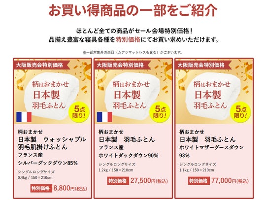 「数量限定」「柄お任せ」で、こだわりの上質寝具を特別価格でお求めいただけます。