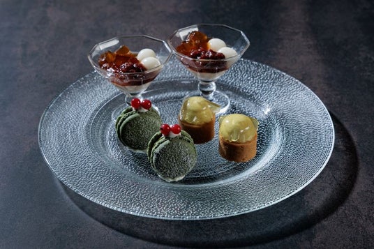 抹茶のガナッシュとかぶせ茶のジュレで仕上げた『抹茶タルト』、ホワイトガナッシュに抹茶のスポンジクラムを纏わせた『苔ボール』、同じく地元・四日市の九鬼産業の黒ごまと合わせた『黒ゴマと抹茶のムース』などパティシエが趣向を凝らしたスイーツの数々。スコーンは、あんこや豆乳抹茶プリンとともにお愉しみください。ドリンクはコーヒー、紅茶(KUSMI TEA)など5種よりお選びいただけます。
