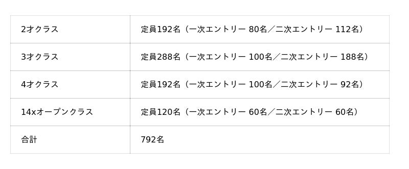 ※該当クラスはレース開催日1日目(2026年5月30日)時点での年齢が基準となります。