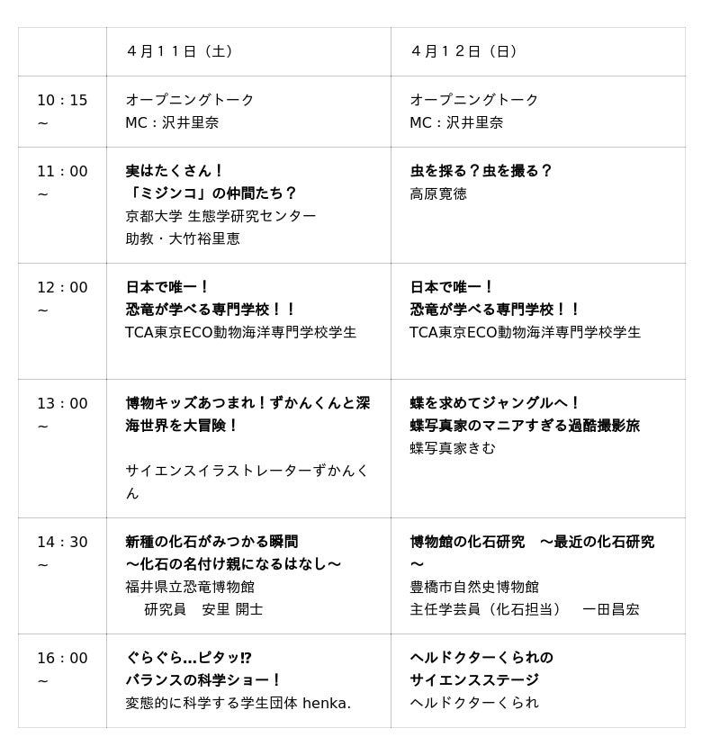 博物マニア実行委員会は自然科学をテーマにしたイベント『地球のお宝大集合!博物マニア 2026』(2026年4月11日(土)、12日(日)開催)のステージの出演者およびタイムスケジュールを発表いたします。