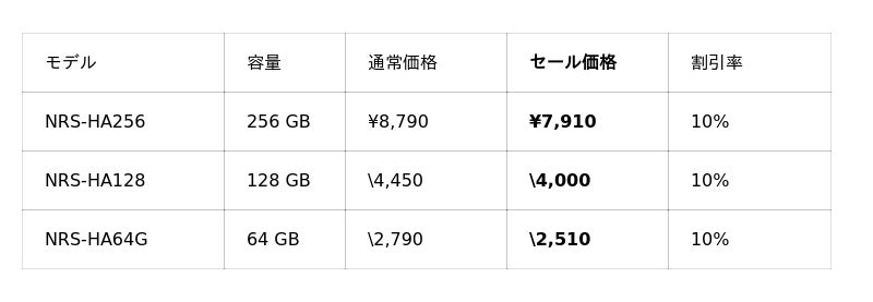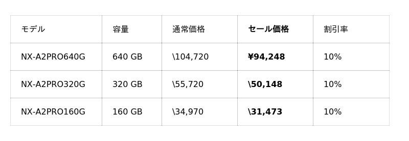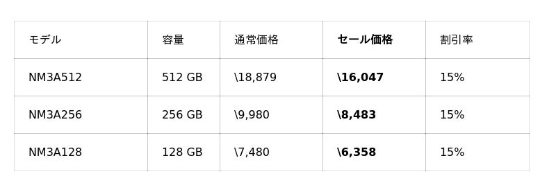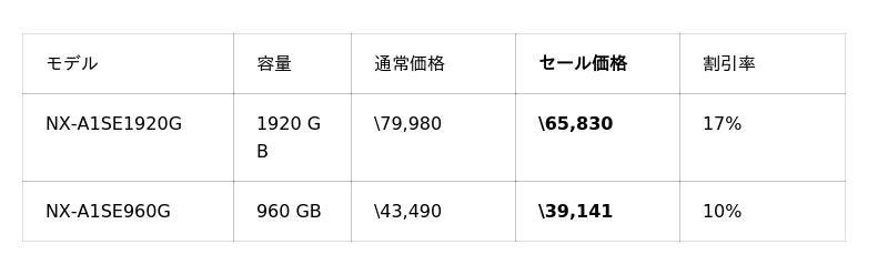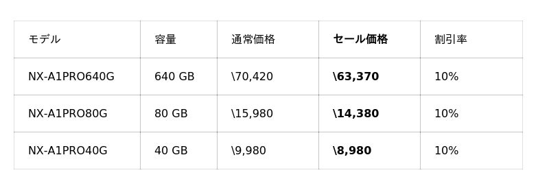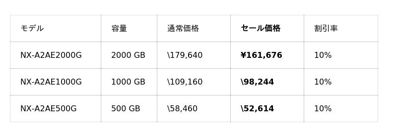 今回のセールでは、メモリーストレージ製品を最大17%OFF、映像関連機器を最大37%OFFで販売いたします。