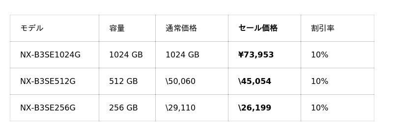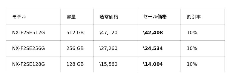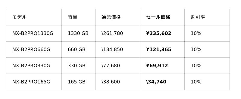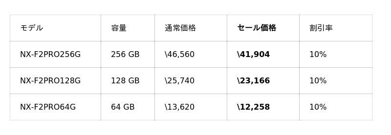 イメージング製品では、特にCFexpress 2.0規格対応のメモリーカード「NX-B2SE」「NX-A1PRO」「NX-A1SE」が在庫限りの販売となります。お早めにお買い求めください。