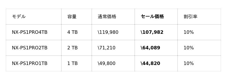Amazon Nextorage公式ストア セール対象商品ページ