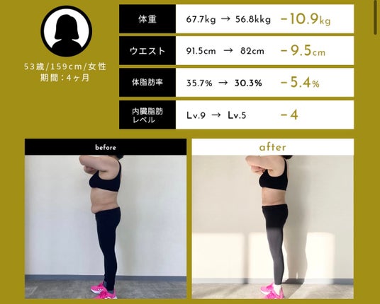 トレーニングは初めてでしたがすぐにコツを習得し、体重は-13.9kgに。