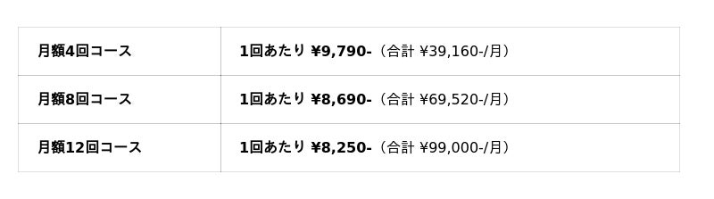 WAPLEは2021年の1号店開業以降、完全個室×初心者特化という独自ポジションで関東エリアに展開を続けています。現在、東京都内7店舗・埼玉県9店舗・神奈川県5店舗・大阪府に1店舗の計22店舗を運営。月額制モデルにより継続的な成長を実現しています。引き続き駅近立地への出店を進め、女性・ファミリー層・カップル層がさらに通いやすいブランドへの進化を目指します。■ 料金表