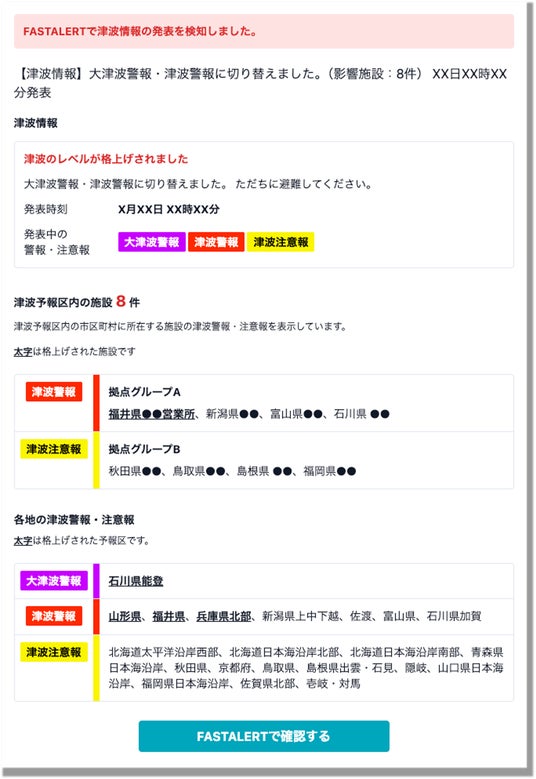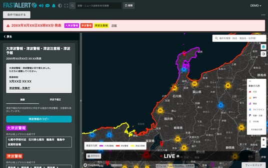 「FASTALERT」、津波発生時に影響可能性のある拠点を迅速に把握する新機能を提供開始