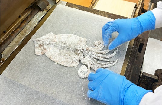するめいかのこだわりするめいかは、日本で最も多く漁獲されるいかとして知られ、全国各地で水揚げされています。いか姿焼きは、数ある中から、お菓子にするのに適したサイズのいかを厳選しました。素材本来の味を大切にするため、水揚げした後、速やかに冷凍されたものを仕入れています。鮮度を保ったまま加工することで、いか本来の旨味を引き出しています。