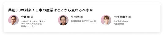 業界の最前線を走るリーダーたちが登壇。経営戦略、テクノロジー、グローバル展開など、多角的な視点から「共創3.0」時代の新たなビジネスモデルを議論する多彩なセッションを展開します。