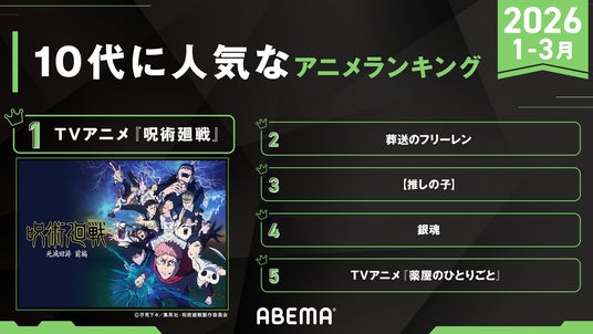 「ABEMA」が「10代に人気なABEMAアニメランキング」を発表!2026年1~3月において、最も10代に見られたアニメはTVアニメ『呪術廻戦』!