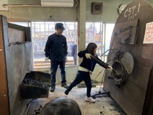 ・JR西日本社員による投炭実演(デモンストレーション)見学および訓練設備を用いた投炭体験