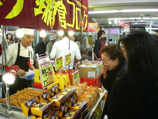 創業の頃 全国巡業へ奔走しましたこのご当地コロッケの味を全国に広めていきたいという想いで従業員総出で全国各地を催事巡業しました。試食提供の際、はじめて鎌倉コロッケを召し上がったお客様からこぼれたお一人お一人の笑顔は今でも忘れられません。そしてこうした経験が励みとなり、商品の味への自信を深めることに繋がりました。これからも先もこのレシピを守り抜こうと強く決意し今日まで至っています。
