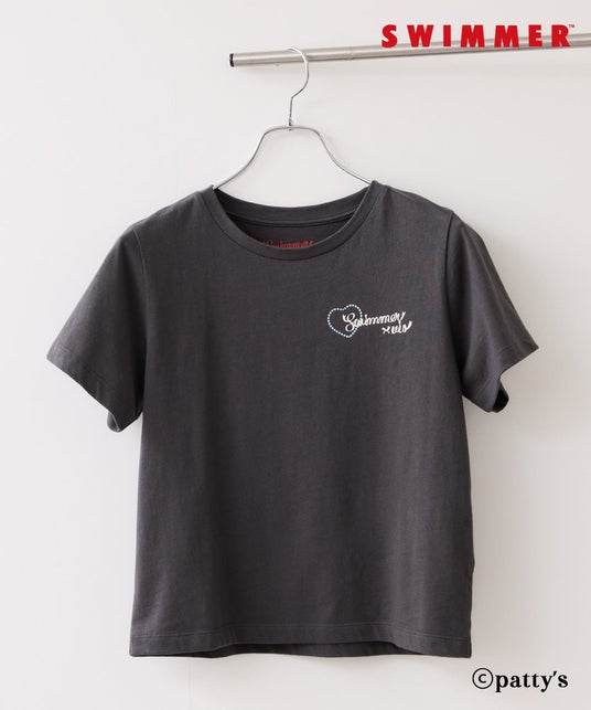 襟の後ろ側にSWIMMERのロゴが(ハート)
