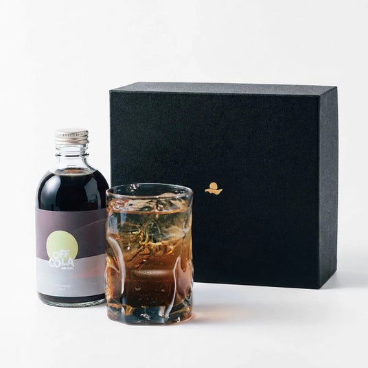 「ふっと一息つく、あなたのオフタイムに」をコンセプトに、SNSやテレビでも話題を呼んでいる。深夜2時をイメージしたクラフトコーラシロップ「am2:00」と、特製グラス・マドラーをシックな黒化粧箱に収めたギフトセットです。特製グラスは、透き通るようなガラスにゆらぎを持たせたフォルム。のオフタイムの世界観を、そのまま形にした一客です。