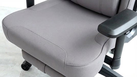 本製品は「座る姿勢も自由に、リラックスも集中も快適に」をコンセプトに開発され、従来の派手なゲーミングチェアとは一線を画す、落ち着いたライトグレーのファブリック素材を採用。生活空間に自然に溶け込むデザインと高い快適性を両立させました。