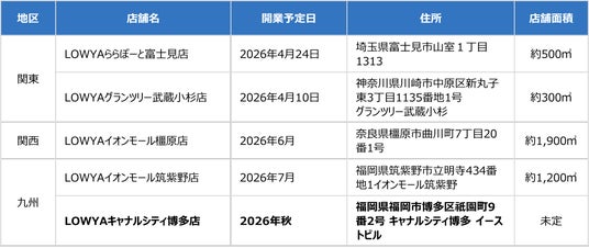 株式会社ベガコーポレーション(本社:福岡県福岡市博多区、代表取締役社長:浮城 智和、証券コード:3542、URL:https://www.vega-c.com 以下:ベガコーポレーション)が運営する、家具・インテリアブランド「LOWYA」(呼称:ロウヤ、URL:https://www.low-ya.com/ 以下:LOWYA)は、2026年秋にキャナルシティ博多 イーストビル(福岡県福岡市)に実店舗をオープンすることを発表いたします。この店舗はLOWYAの実店舗として最大の売り場面積となる予定です。