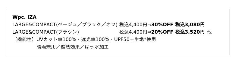 取り扱いブランド :Wpc./W by Wpc. /Wpc. IZA/SiNCA by Wpc./Wpc. Patterns/UVO