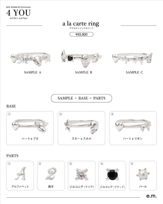 チャームやモチーフリングなど限定品が多数ラインナップ。【e.m.青山店】オープン4周年を祝う期間限定イベントを開催。