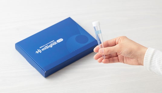 「マイシグナル・スキャン」は、尿中のマイクロRNAを抽出しAIで解析することで、すい臓がんを含む10種のがんリスク*を、がんの種類別に、ステージ1から評価する検査です。尿を採取するだけで、体に負担なく検査することが可能です。