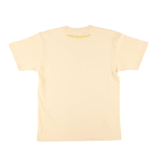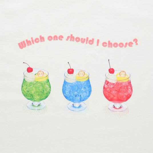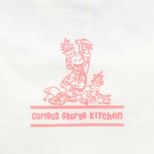 Curious George Kitchenにて人気のクリームソーダを表面にデザインした3サイズ展開のTシャツです。3種のクリームソーダは、カラフルな色合いがかわいらしく、背面の上部にはフルーツに囲まれてうれしそうなジョージをあしらいました。